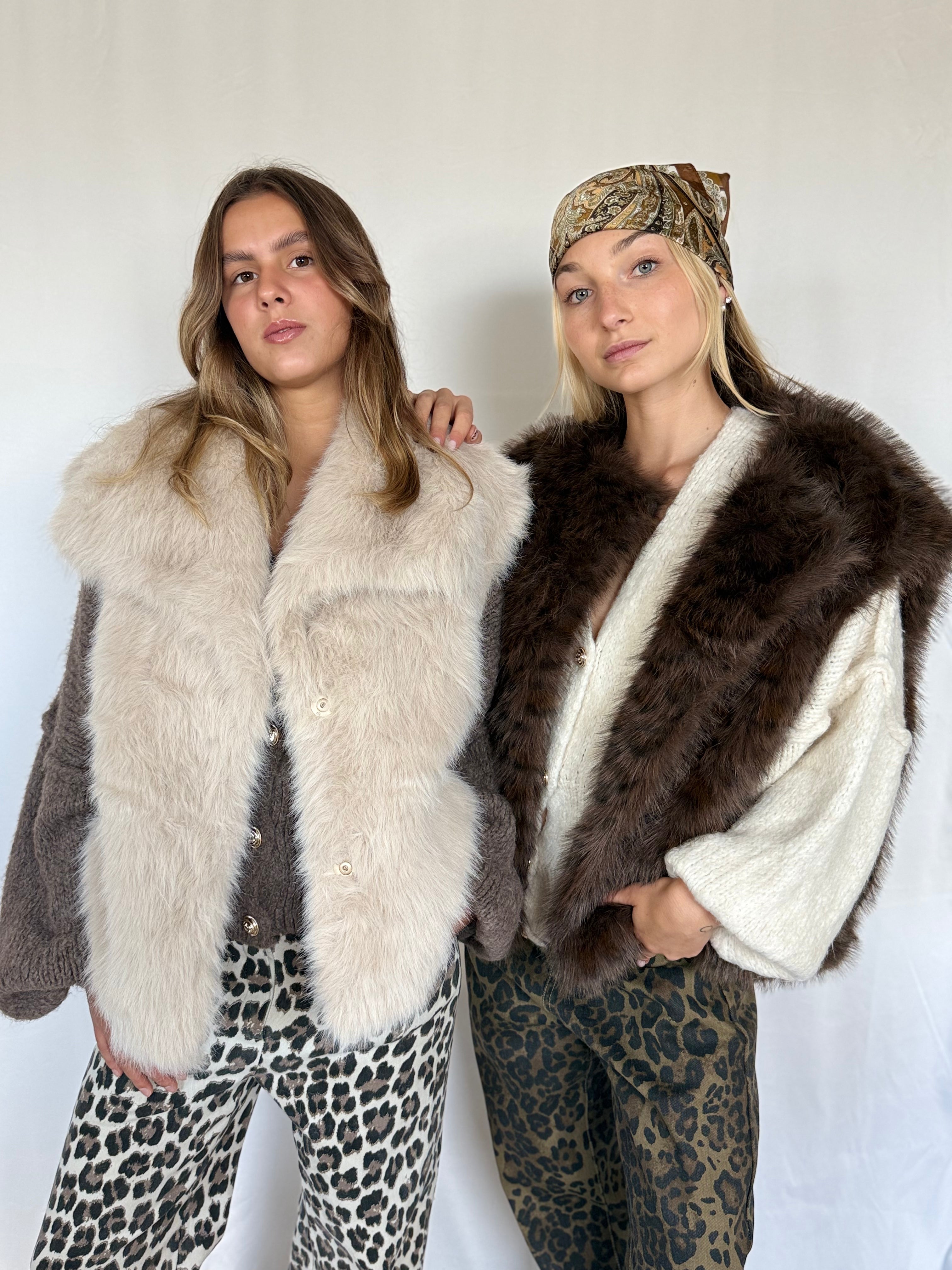 Cette fourrure sans manches NEVA allie chaleur et praticité grâce à sa fermeture pression et sa poche fonctionnelle. Parfaite pour vous tenir confortablement au chaud tout en apportant une touche élégante à votre tenue. Idéale pour les journées fraîches, elle se porte facilement et vous accompagne avec style.